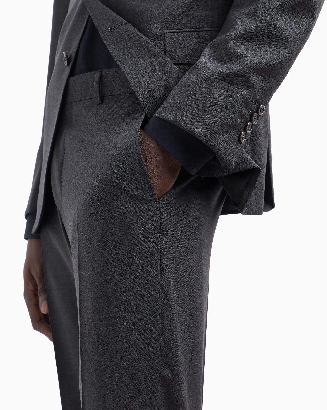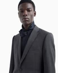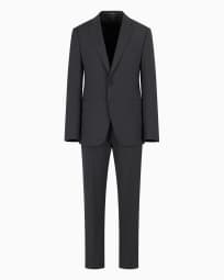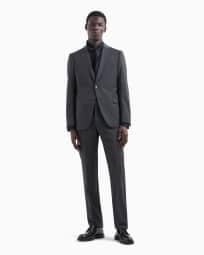 Slim-fit, single-breasted suit in natural, tropical, stretch light wool