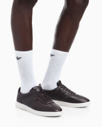 Leather sneakers with eagle plate