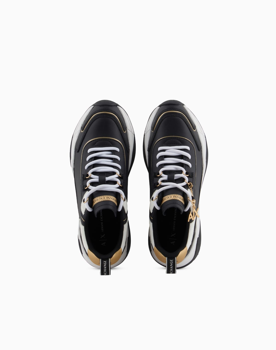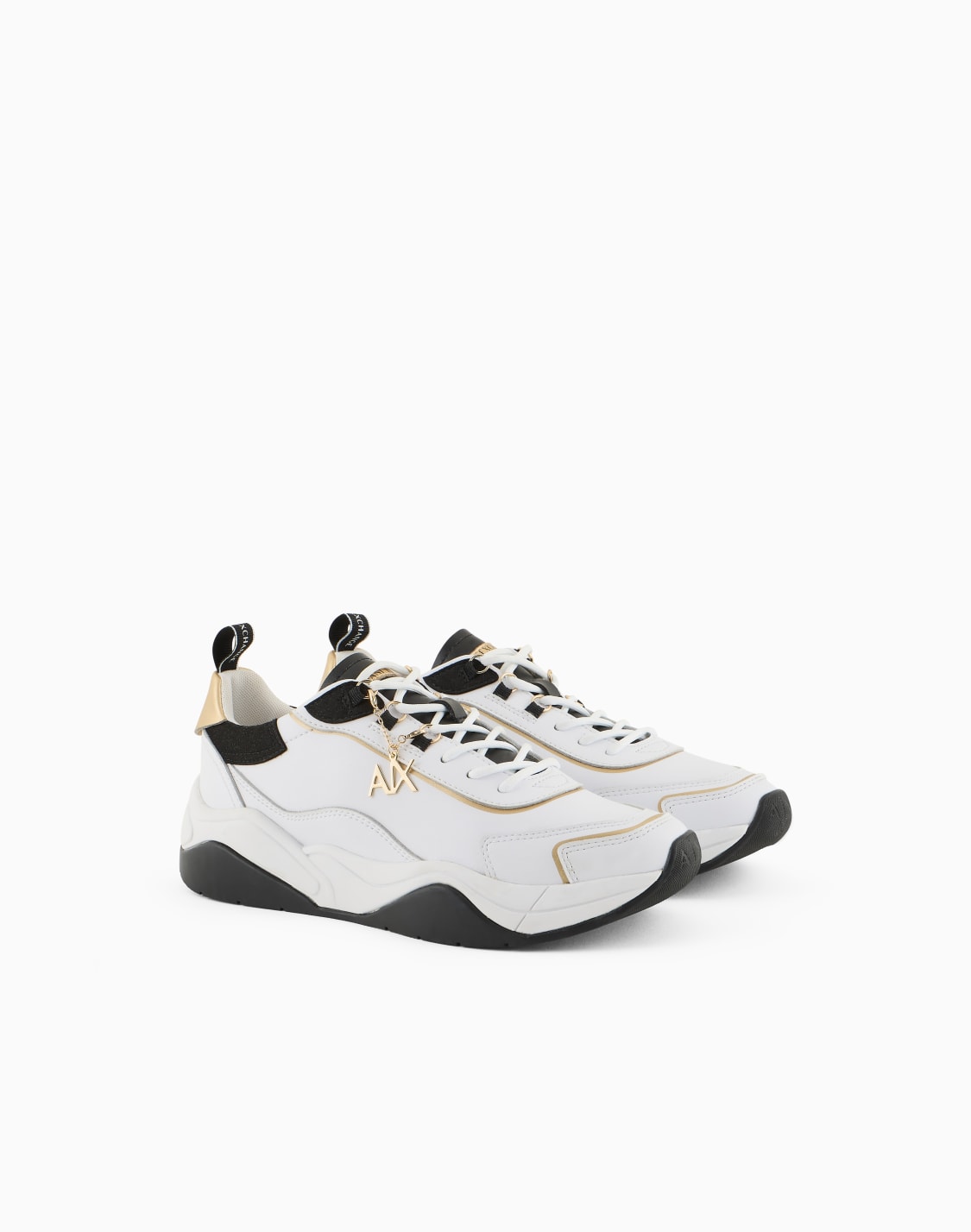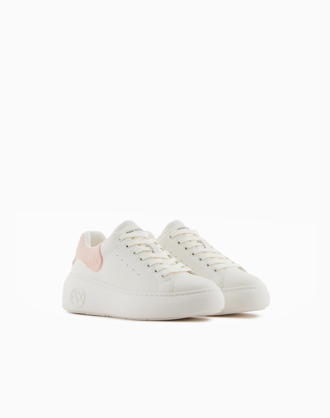 Armani Exchange women’s shoes stand out for their versatility and comfort, combining high-quality materials, innovative designs and a colour palette that ranges from classic tones to more vibrant hues. Sneakers are a true go-to for any outfit. From classic looks to sportswear, they are a must-have in every woman’s wardrobe. Choose A|X designer sneakers in different styles: in ecological leather or canvas, with contrasting details or platforms, they’re perfect for satisfying your pursuit of comfort without sacrificing style.The selection of A|X women’s shoes offers styles for every occasion, which can be worn with casual or more sophisticated outfits, following the latest trends. From genuine leather combat boots to cowboy boots, add a bold touch to your look that can be worn with jeans and mini dresses alike. In warmer months, flat sandals and heeled sandals are the perfect shoes to enhance every step with elegance and femininity. Discover the Armani Exchange women’s shoe line and find the item that best suits your style.