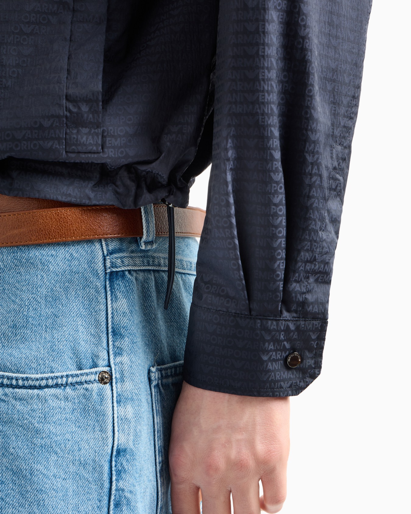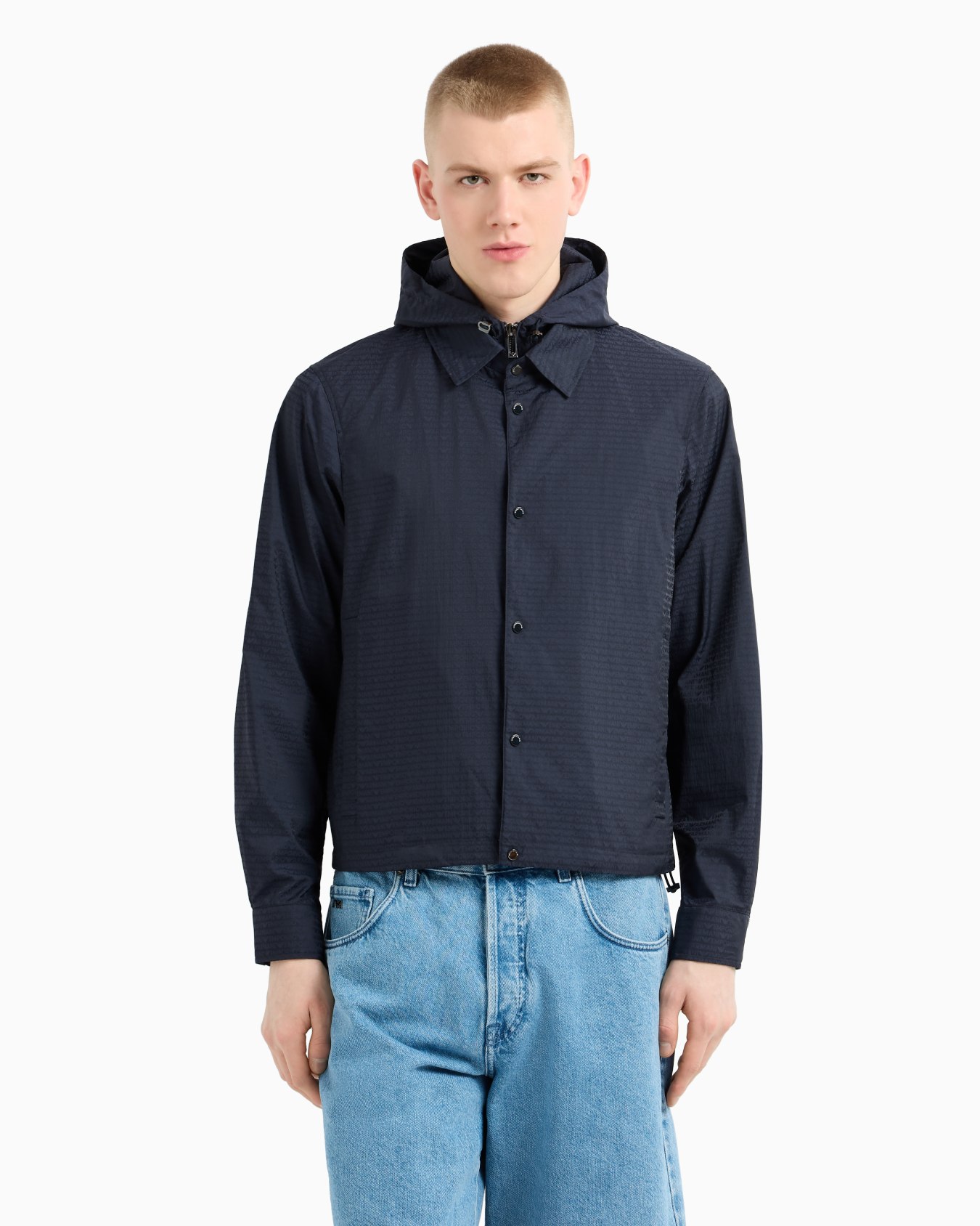 Nylon blouson with detachable inner panel with jacquard all-over lettering