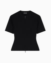 Fabric-stitch knit zip-up jacket