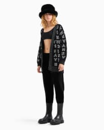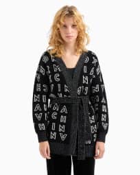 Maxi-cardigan with jacquard knit belt with ASV logo