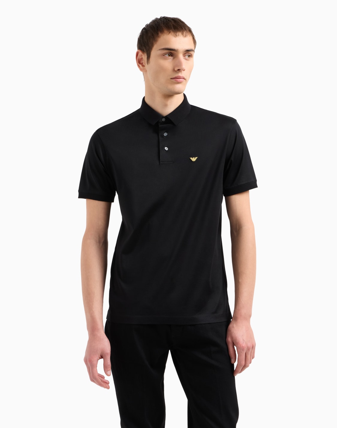 Slim-fit stretch piqué polo shirt with micro eagle