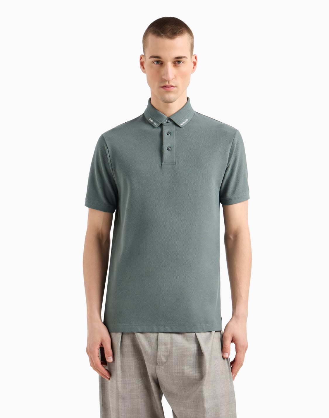 Piqué polo shirt with embossed logo collar