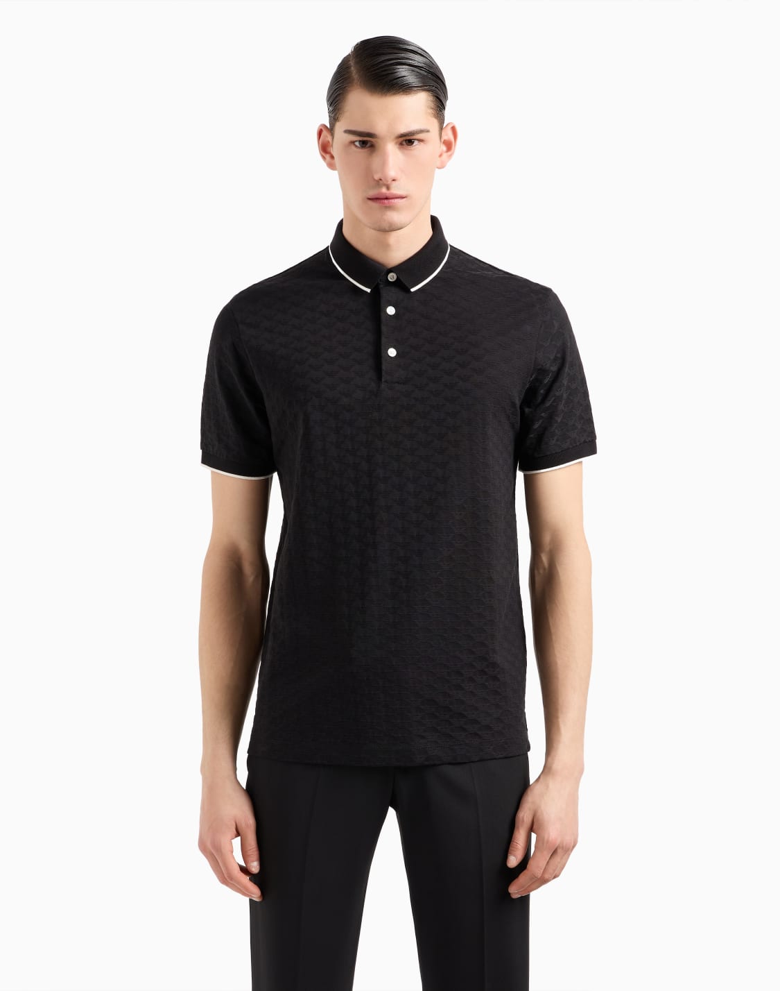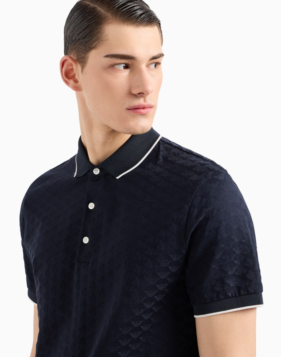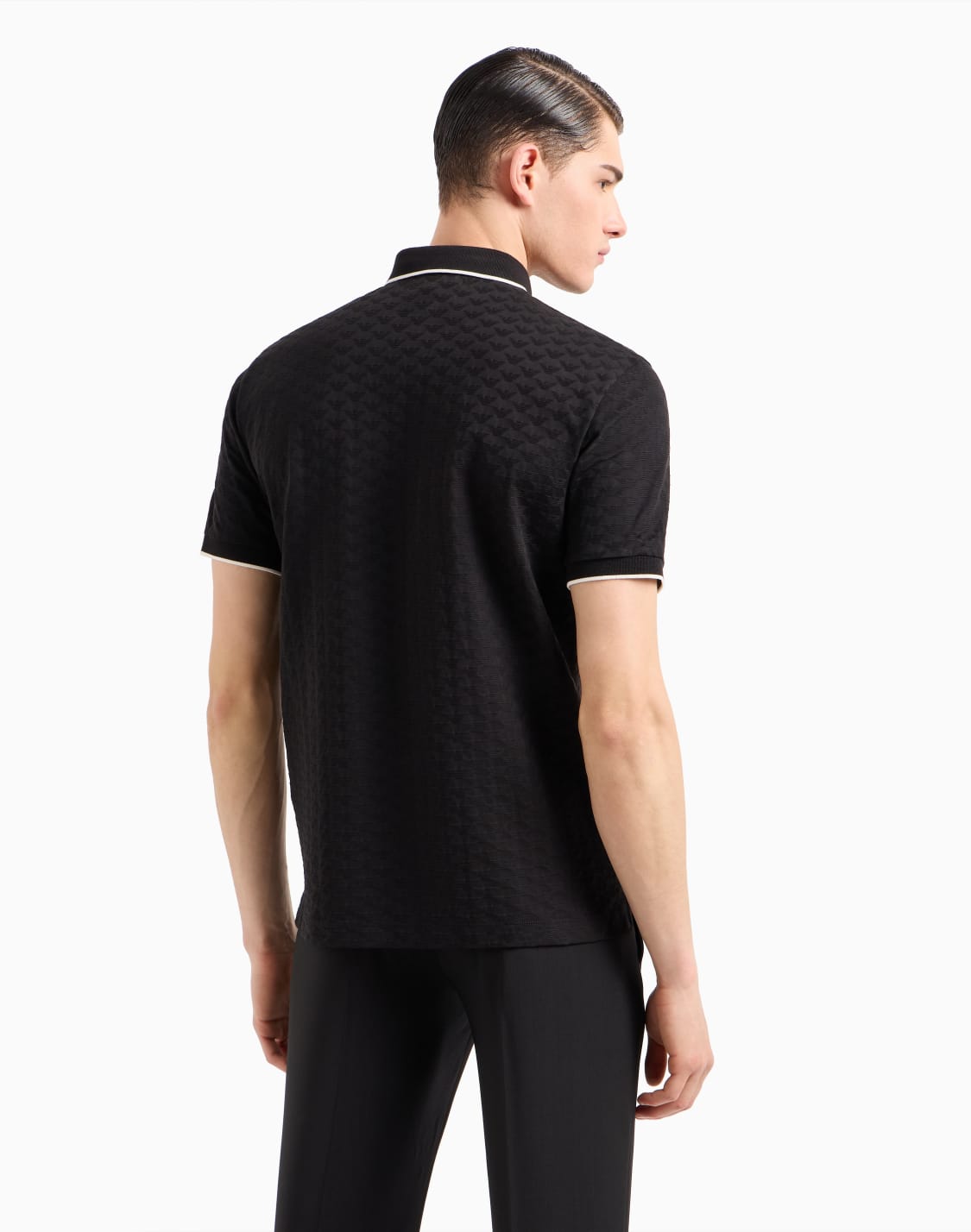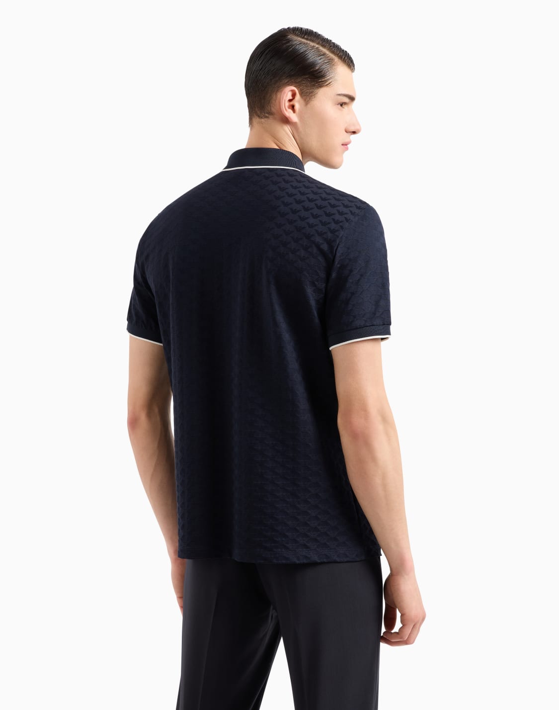 Mercerised jersey polo shirt with all-over jacquard eagle