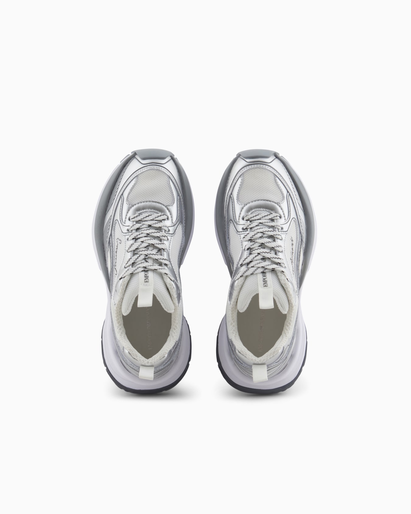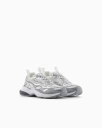 Mesh sneakers with laminated details and signature logo