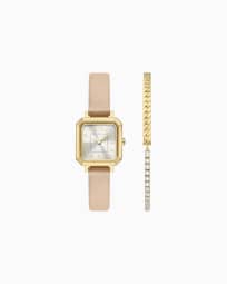 Three-Hand Nude Leather Watch and Bracelet Gift Set