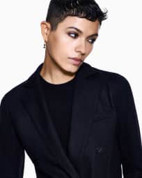 Pure cashmere jersey double-breasted jacket