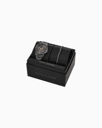 Chronograph Gunmetal Stainless Steel Watch and Bracelet Gift Set