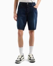 Cotton denim shorts with contrast stitching