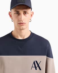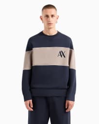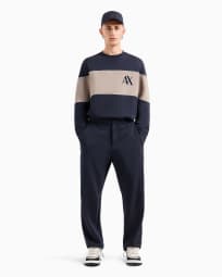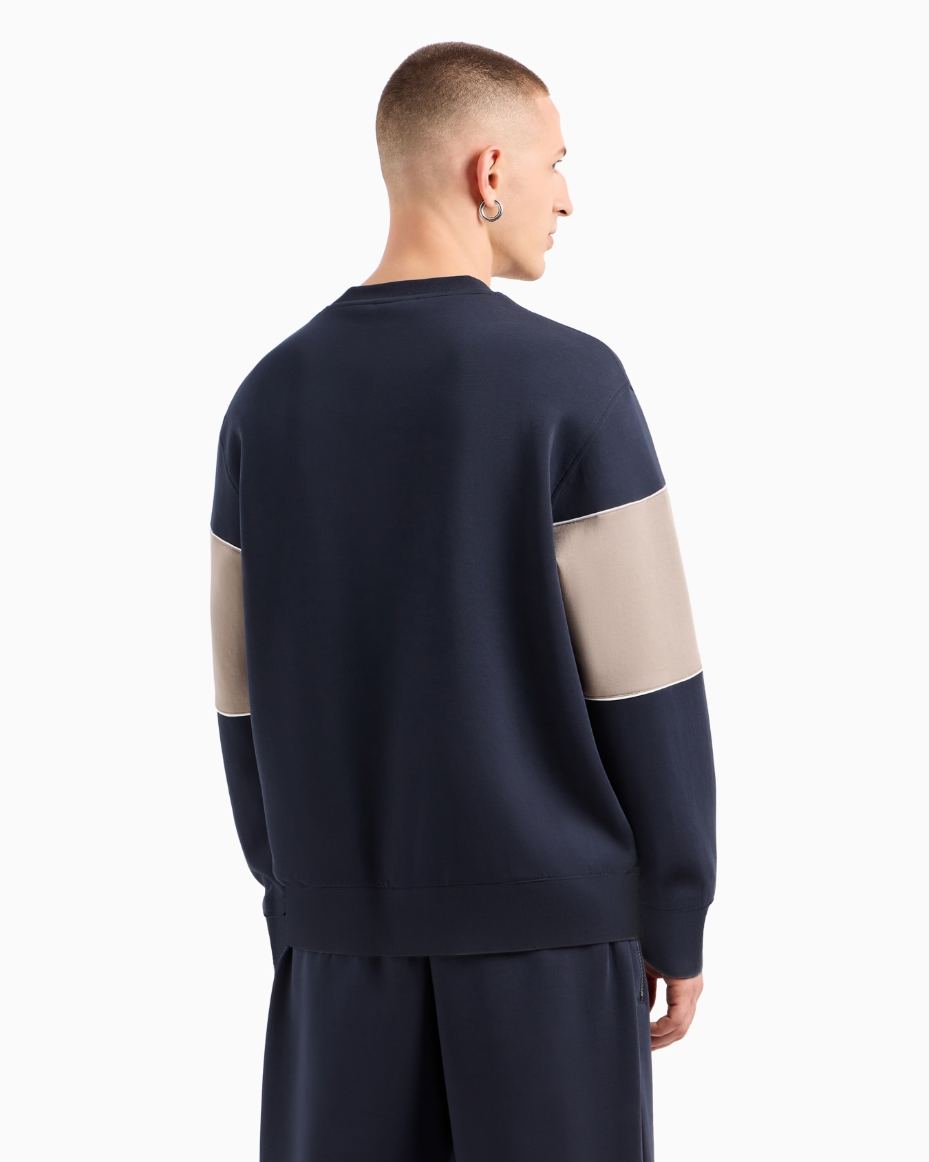 Crewneck sweatshirt in stretch cotton blend with contrasting band