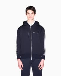 Full zip sweatshirt in bonded cotton with bands on the sleeves