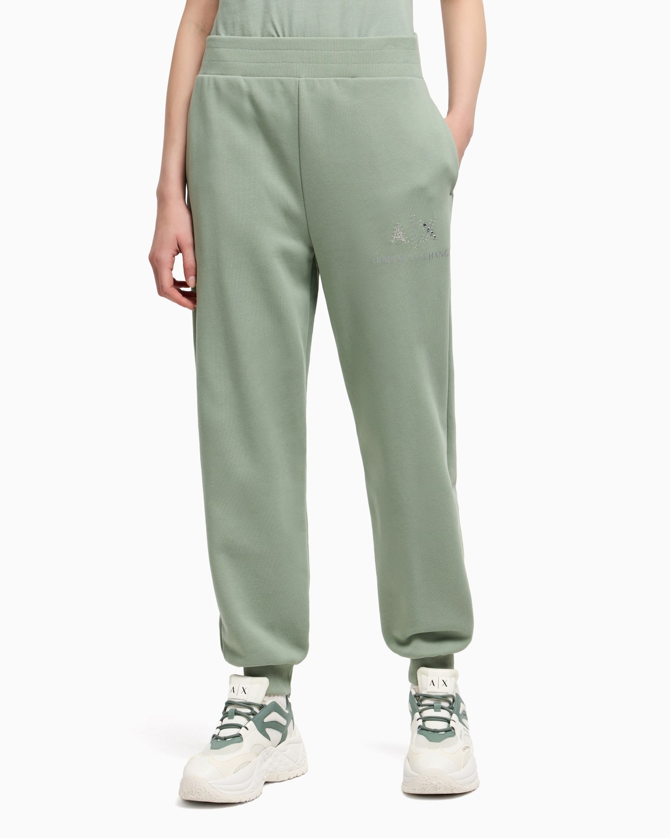 Jogger pants with logo and rhinestones
