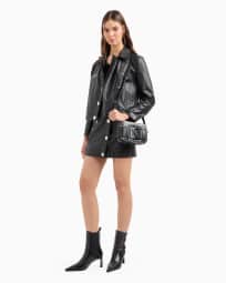Leather miniskirt with diagonal buttoning