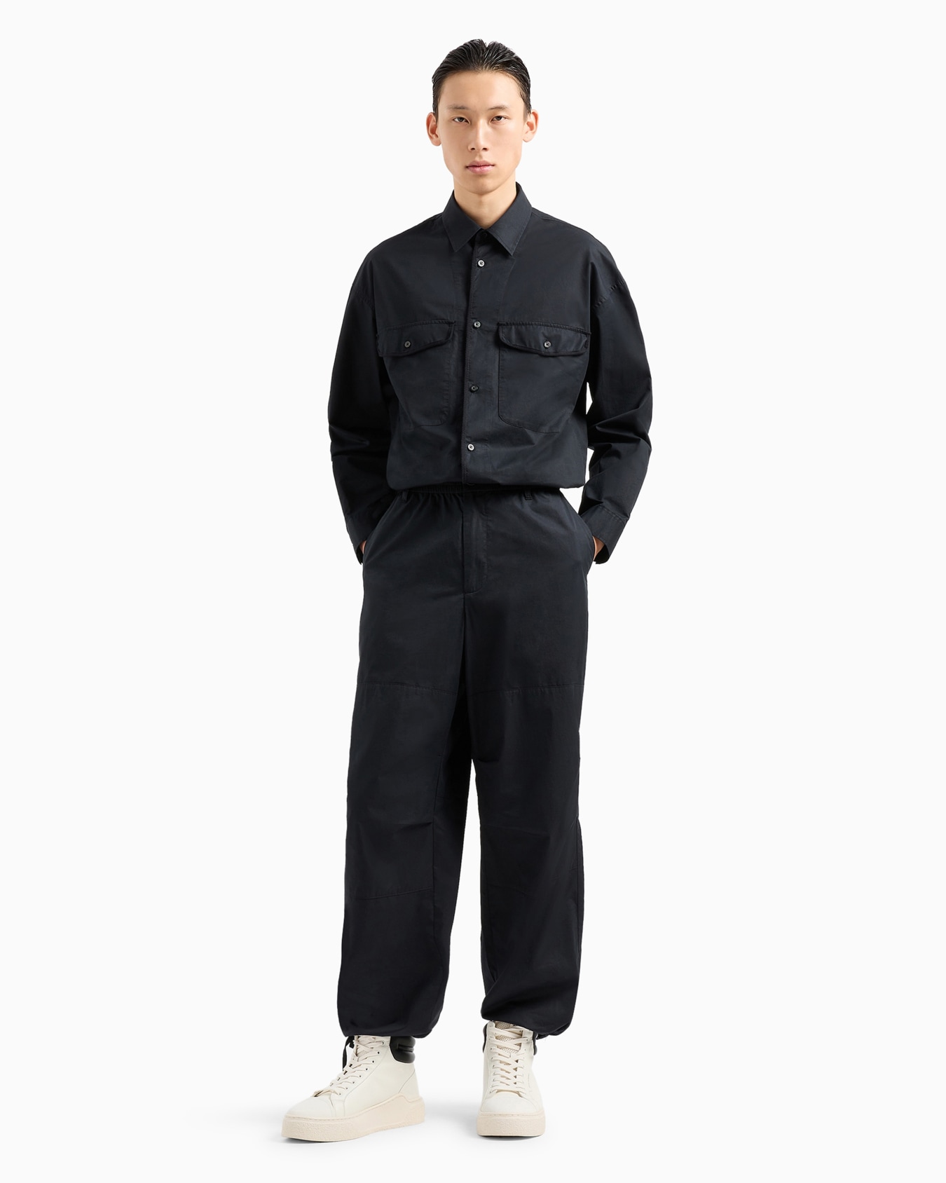 Oversized cotton twill trousers with drawstring