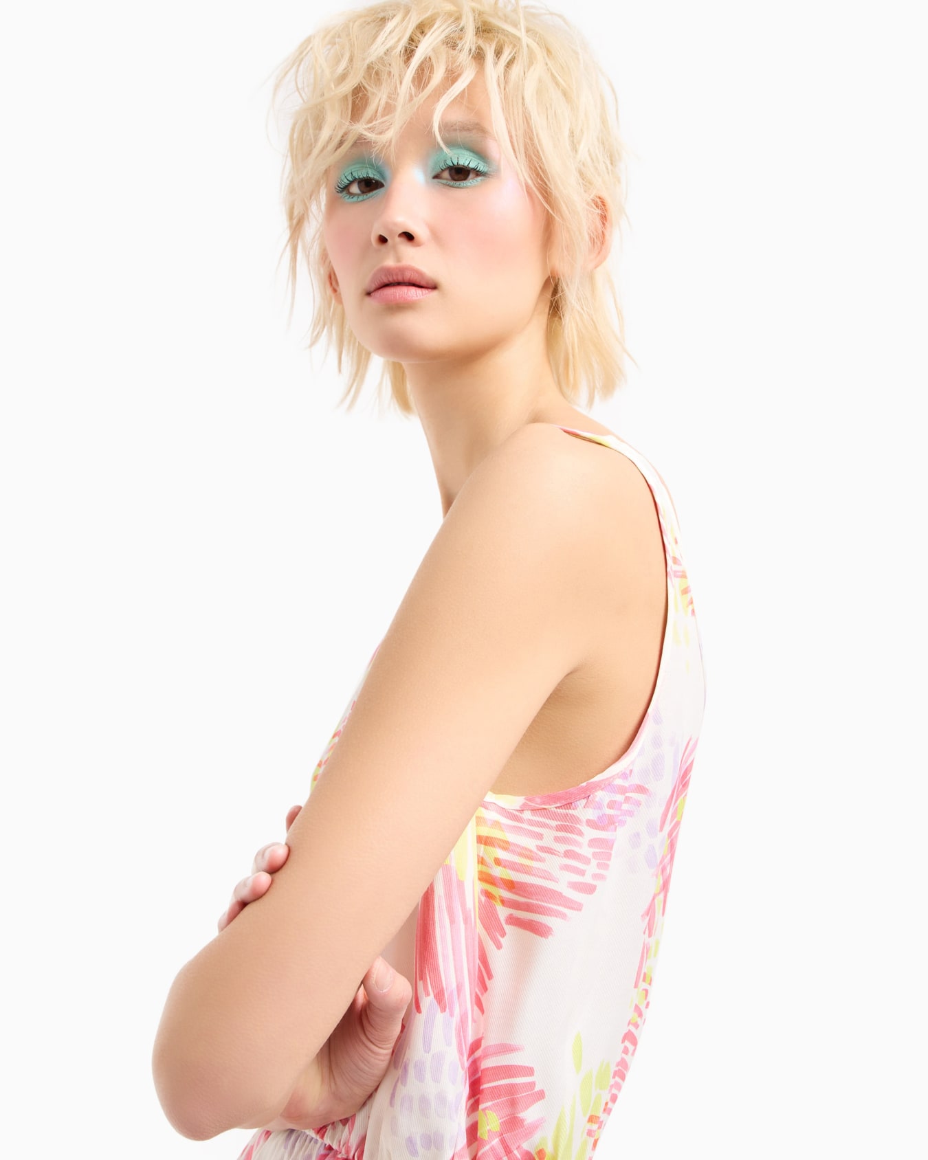 Short jumpsuit in patterned viscose twill