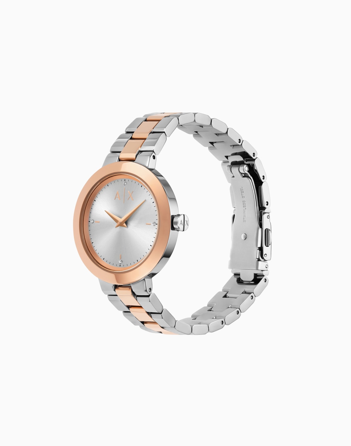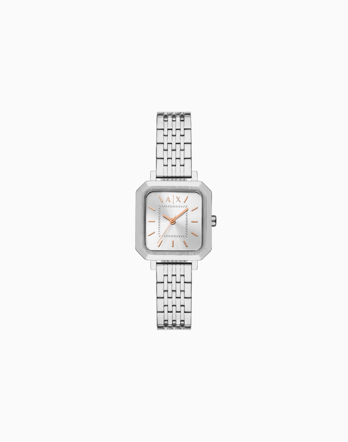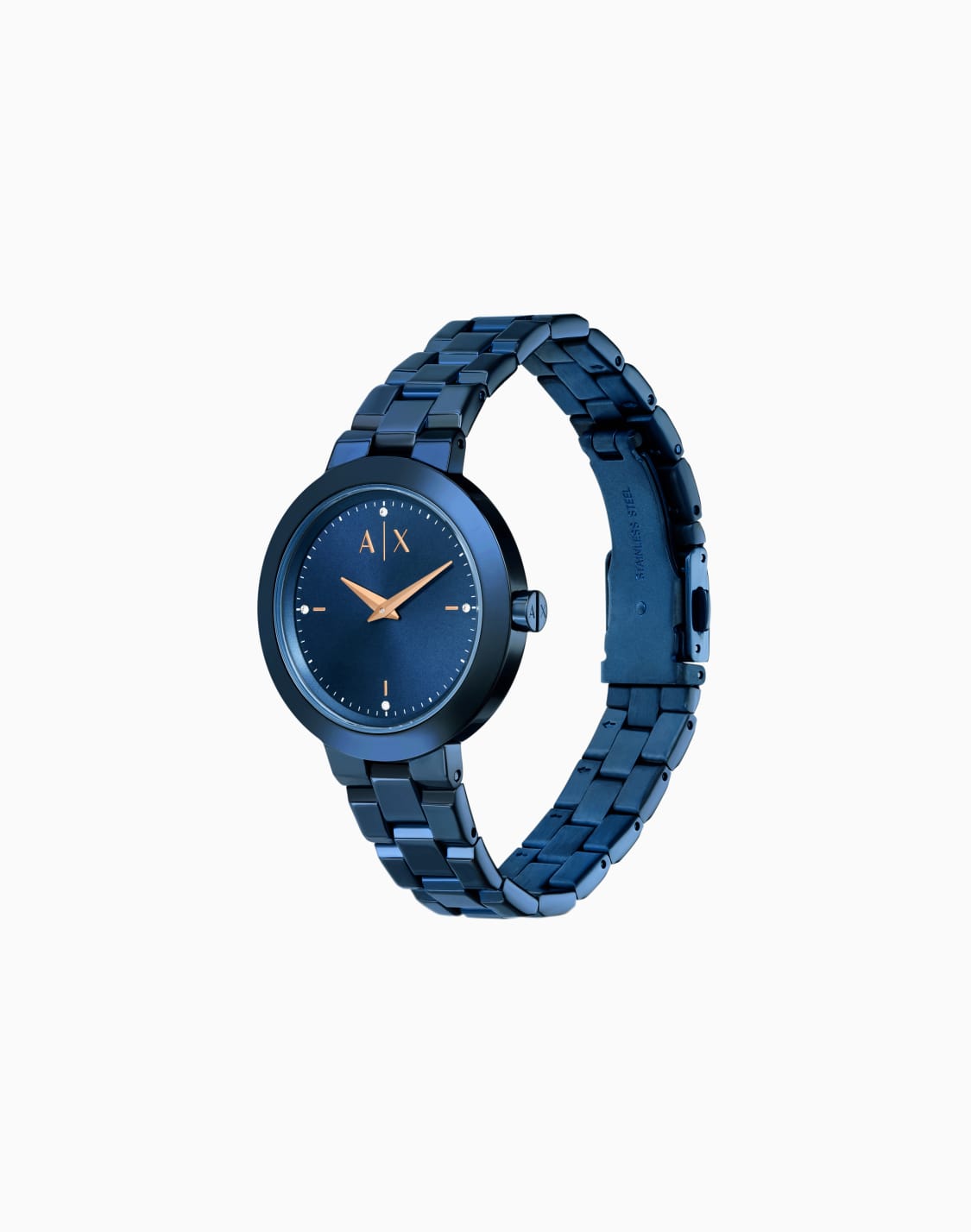 Be captivated by Armani Exchange women’s watches, with their unmistakable modern style. Steel watches with leather or rubber strap, that combine elegance and trend, ideal for the woman who loves to stand out.The A|X women’s steel watches are distinguished by their cutting-edge design and clean lines, as well as the practicality of the hard-wearing, durable material. With the women’s rubber watches, you’ll combine functionality, flair and comfort during everyday activities. Choose women’s leather strap watches, carefully curated in every detail, suited to any outfit from the most formal to casual chic. The A|X women’s designer watches are more than just accessories and are perfect as a gift idea, with different variations available: 36 mm and 38 mm case sizes, minimalist dials and three-hand watch faces. Discover the range of fashion watches for women from the Armani Exchange collection and find the style that best reflects your personal taste.