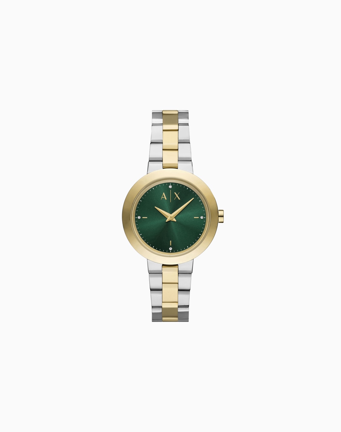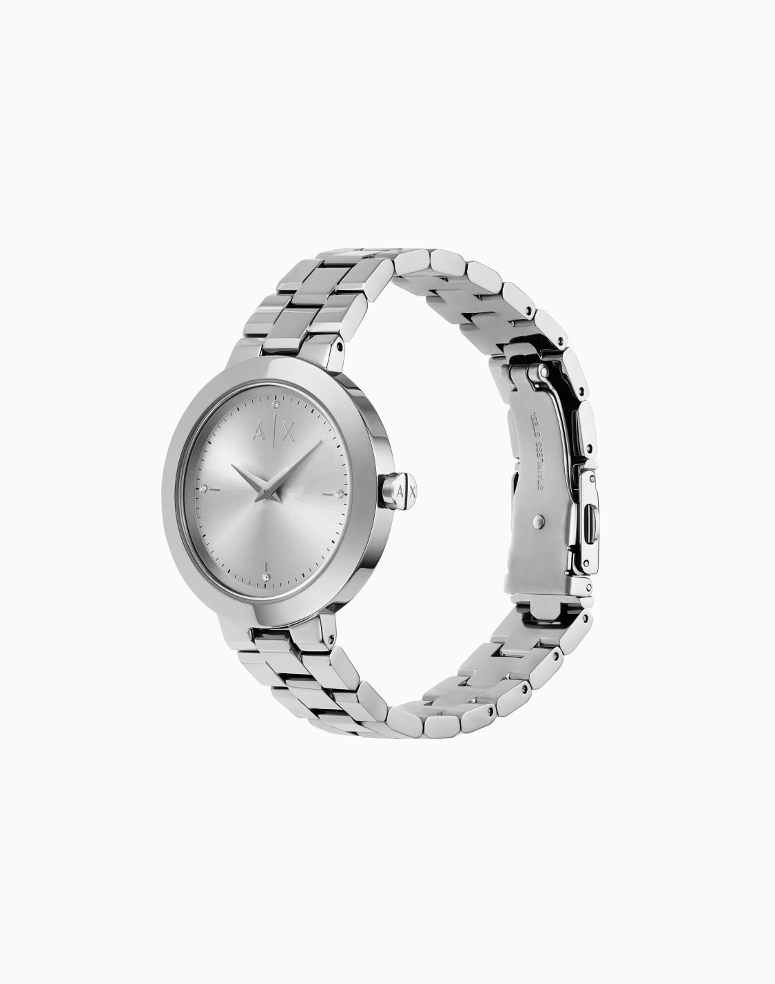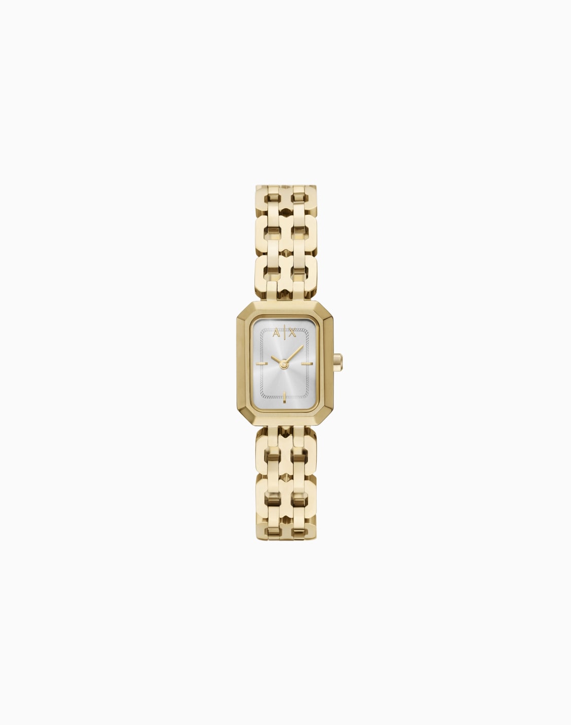 Be captivated by Armani Exchange women’s watches, with their unmistakable modern style. Steel watches with leather or rubber strap, that combine elegance and trend, ideal for the woman who loves to stand out.The A|X women’s steel watches are distinguished by their cutting-edge design and clean lines, as well as the practicality of the hard-wearing, durable material. With the women’s rubber watches, you’ll combine functionality, flair and comfort during everyday activities. Choose women’s leather strap watches, carefully curated in every detail, suited to any outfit from the most formal to casual chic. The A|X women’s designer watches are more than just accessories and are perfect as a gift idea, with different variations available: 36 mm and 38 mm case sizes, minimalist dials and three-hand watch faces. Discover the range of fashion watches for women from the Armani Exchange collection and find the style that best reflects your personal taste.