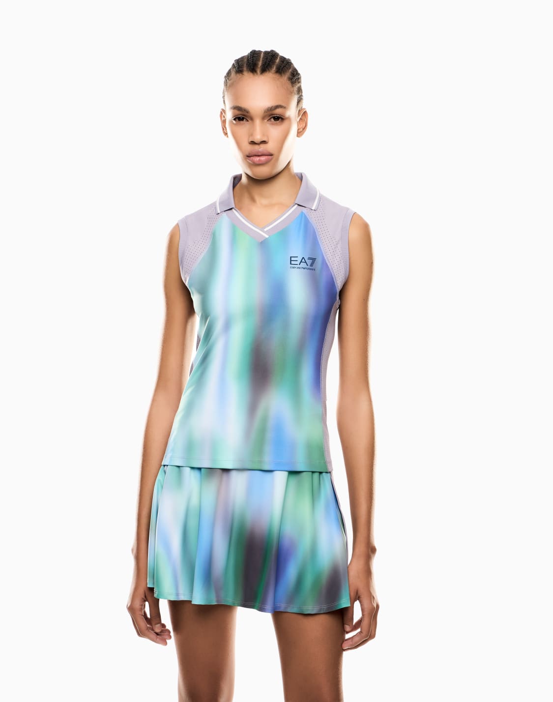 fitness apparel. For low-impact physical activity or leisure time, opt for a short-sleeved T-shirt, cropped T-shirt or long-sleeved top made from cotton or stretch jersey, guaranteeing non-stop comfort and style. Unleash your imagination with a vast range of colours, iconic prints and oversized logos, and choose the fit that suits you best. If you prefer a more sophisticated style without sacrificing comfort, try an EA7 women’s polo shirt with long or short sleeves, perfect when worn with ultra-casual outfits. With the EA7 collection of women’s sports tops and T-shirts, every woman can find the perfect piece for both leisure and exercise. Whether you’re running on the treadmill or taking a walk, EA7 sports tops and T-shirts not only embrace practicality, but also a unique style that lets you stand out in any setting.