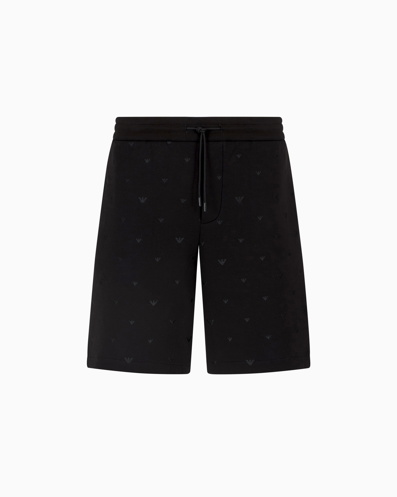 Double jersey Bermuda shorts with all-over micro eagle embroidery