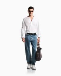 Garment-dyed jersey Henley-collar shirt