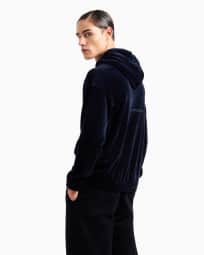 Hooded sweatshirt in chenille with Emporio Armani embroidery