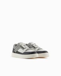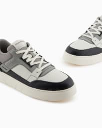 Leather and mesh sneakers with contrasting details