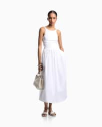Long dress in poplin with smocked motif