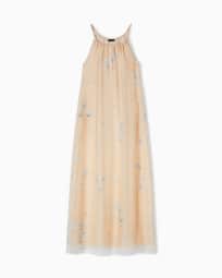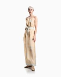 Long dress in silk organza with floral foulard print