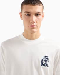 Lyocell blend-jersey T-shirt with French bulldog embroidery