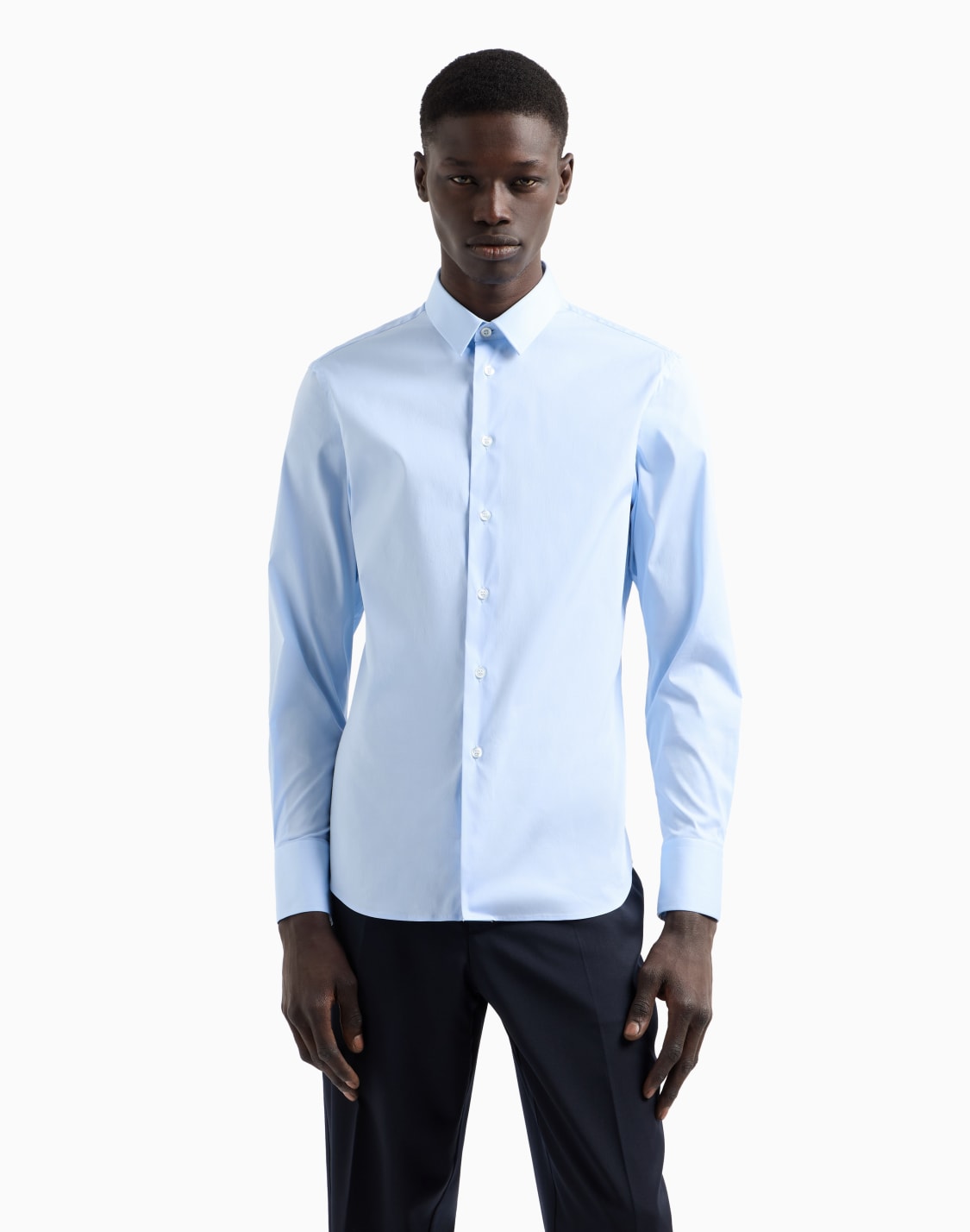 Single-breasted, slim-fit suit in brushed stretch light wool