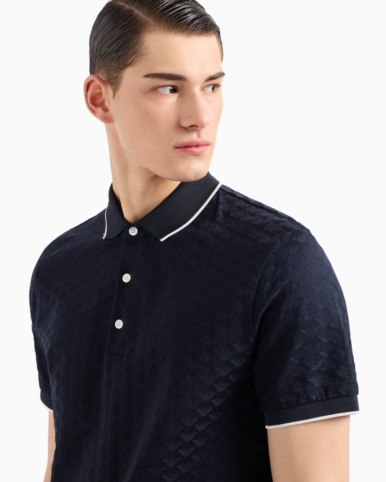 Mercerised jersey polo shirt with all-over jacquard eagle