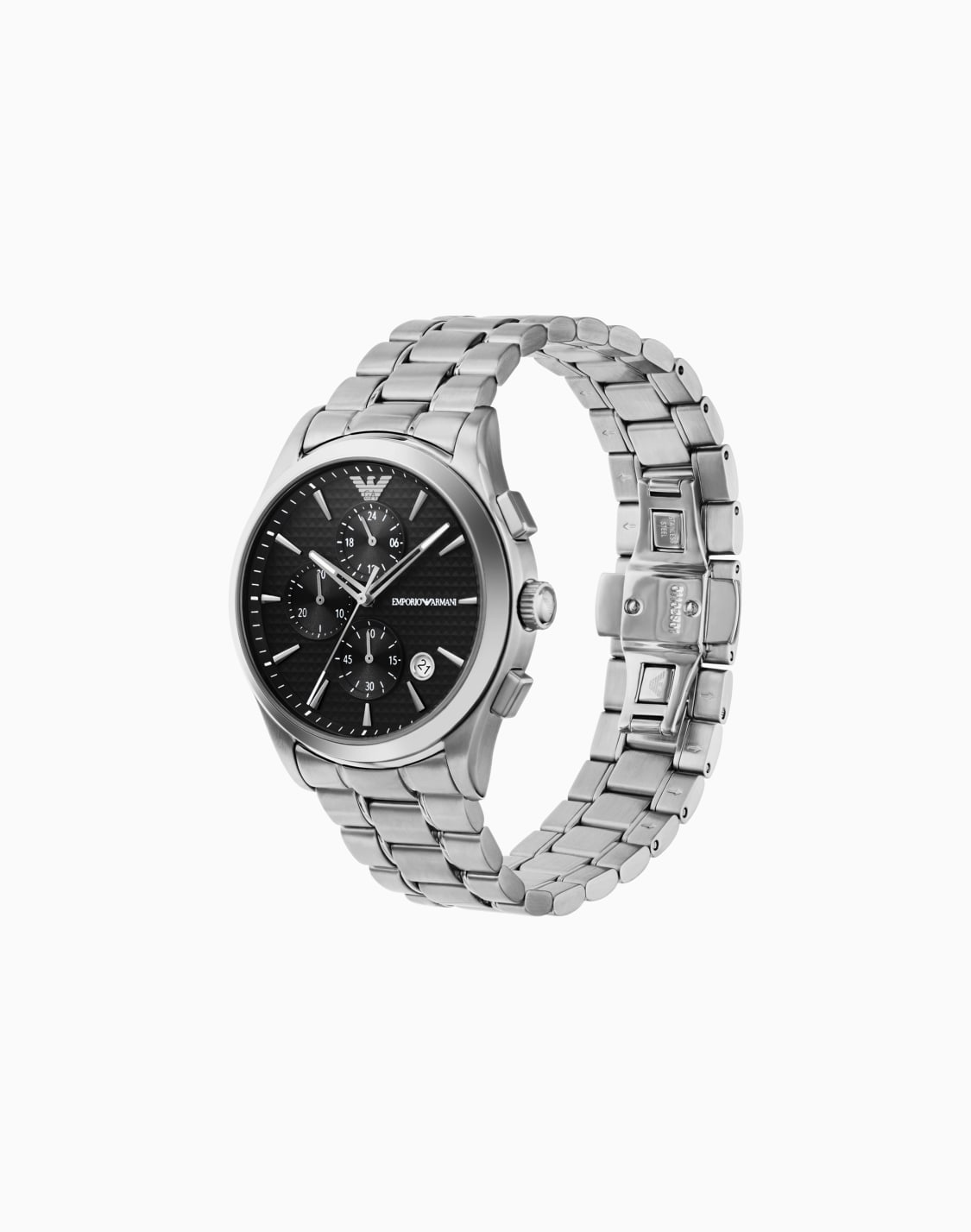 Three-Hand Date Stainless Steel Watch and Leather Strap Set
