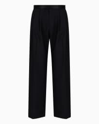 Virgin-wool two-way stretch canvas trousers with godet pleats