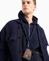 Giorgio Armani Neve card holder in leather and iridescent nylon