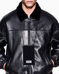 Calfskin and suede mobile phone holder