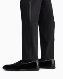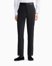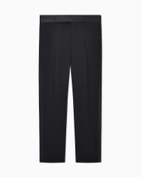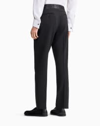 Flat front tuxedo trousers in wool crepe