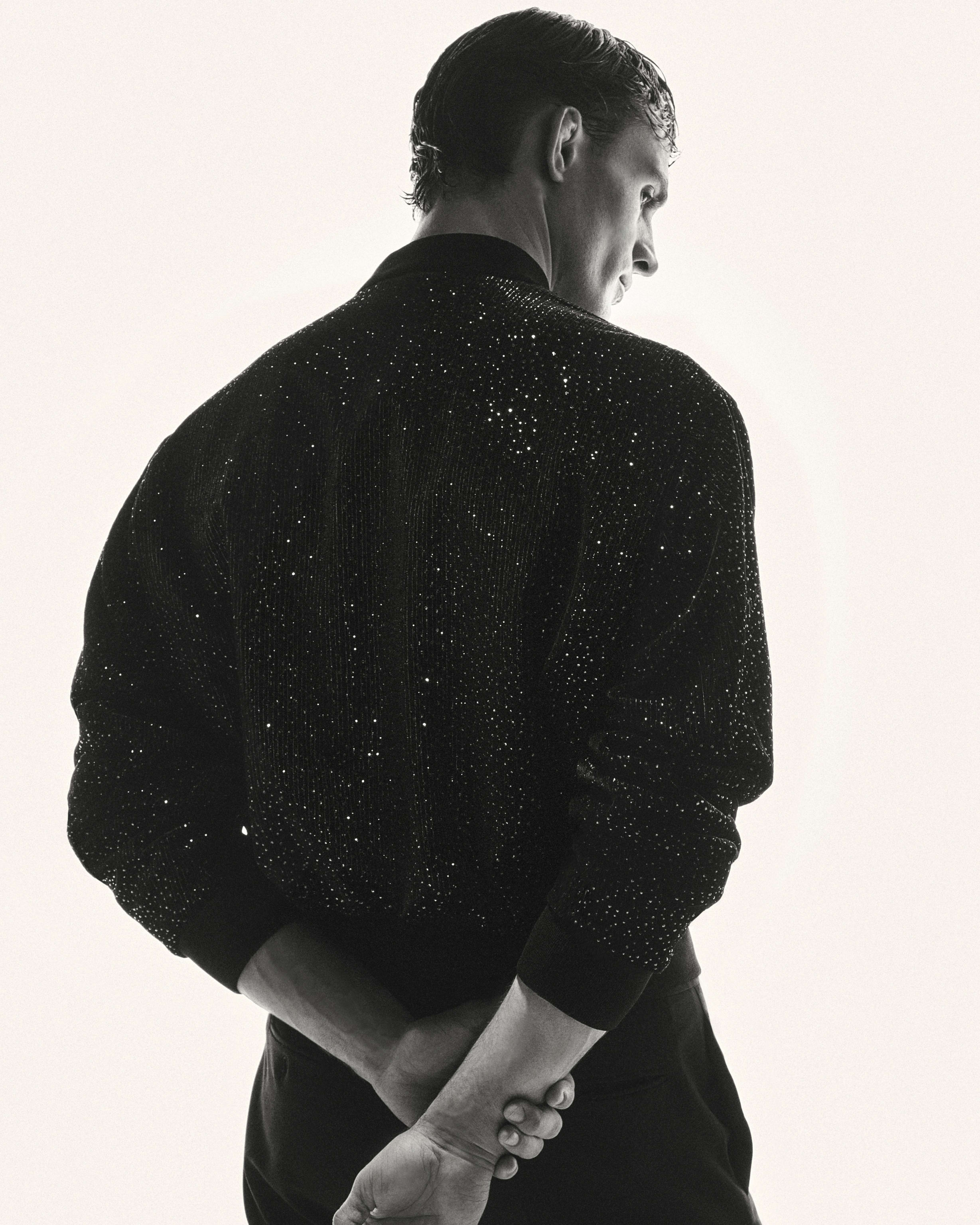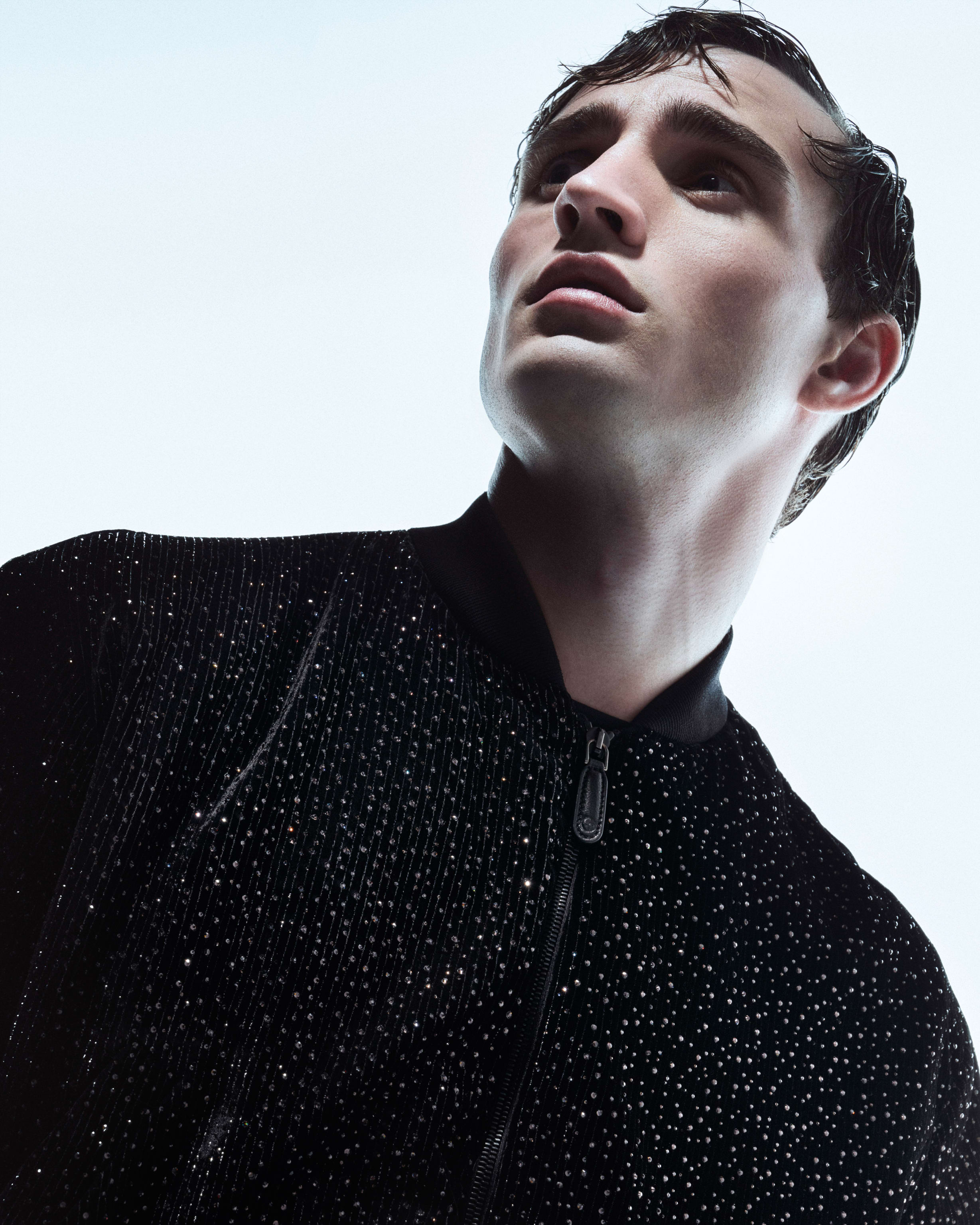 - Velvet evening jackets, embellished with crystal details, offer a striking contrast of texture and shine, evoking the glow of city lights at night.