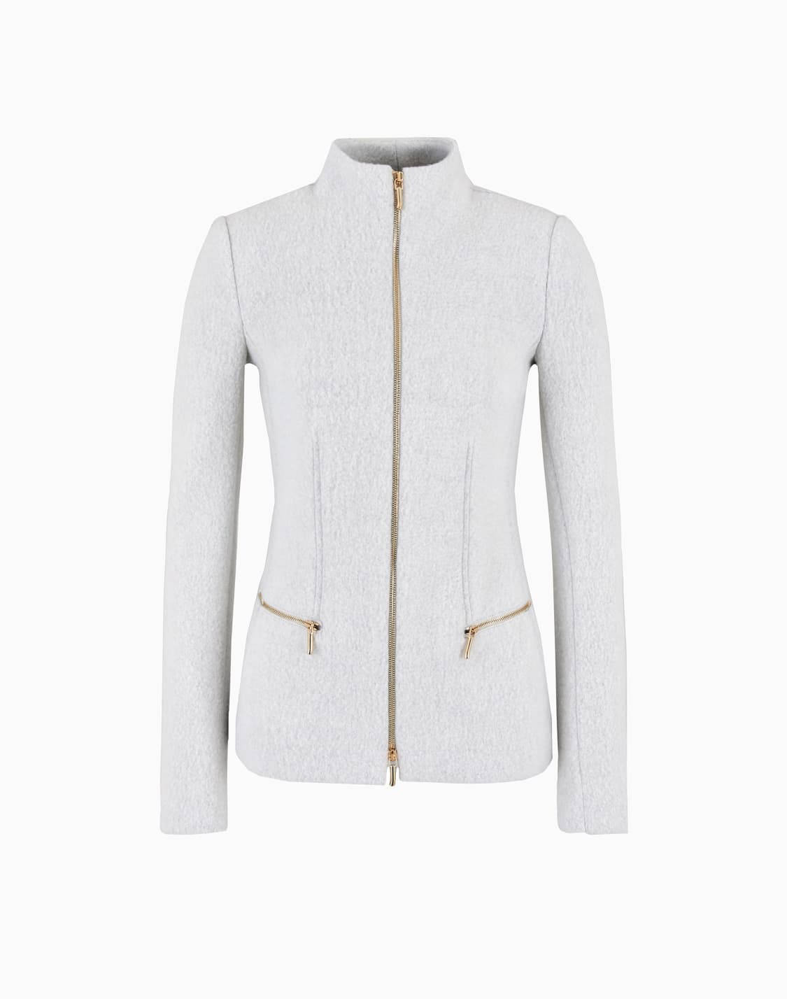 Double-breasted jacket in a jacquard cashmere and viscose jersey