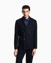 Double-breasted blazer in ultra-lightweight compact wool jersey