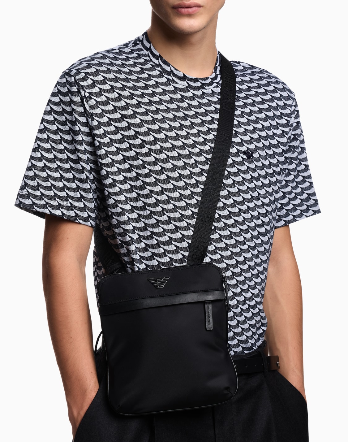 Men’s crossbody bags are a stylish detail that complements any outfit. Emporio Armani designer crossbody bags allow you to find the design that best suits every taste and need. The collection features flat crossbody bags and messenger bags, with zips: whether they are minimalist or retro, they are ideal for the man who loves a carefully put-together look and unmistakable style.The men’s crossbody bag is the perfect choice for those who love to have what they need at their fingertips, without ever compromising on style. Dedicated to those always on the go, men’s crossbody bags have convenient pockets and compartments both inside and outside to hold all the essentials. They are also perfect for work, leisure or university, either in nylon, leather or cotton and always stand out for their sophistication.Chic yet casual men’s crossbody bags can be easily paired with men’s smart T-shirts or Emporio Armani branded polo shirts.