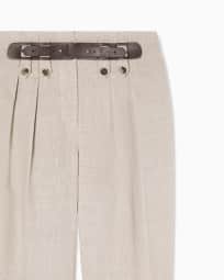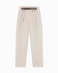 Oval-leg trousers in pure linen with a basketweave effect