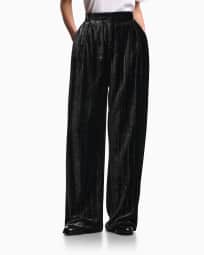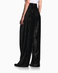 Velvet trousers with pleats with a devoré pinstriped motif