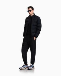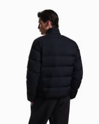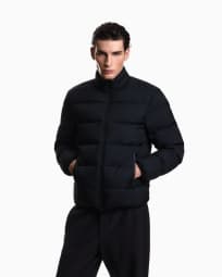 Water-repellent, quilted nylon down jacket with jacquard logo lettering