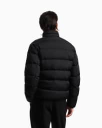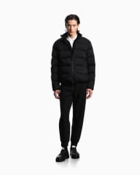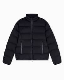 Water-repellent, quilted nylon down jacket with jacquard logo lettering