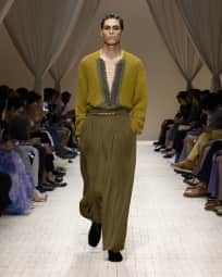 Wide trousers in micro-pleated canvas