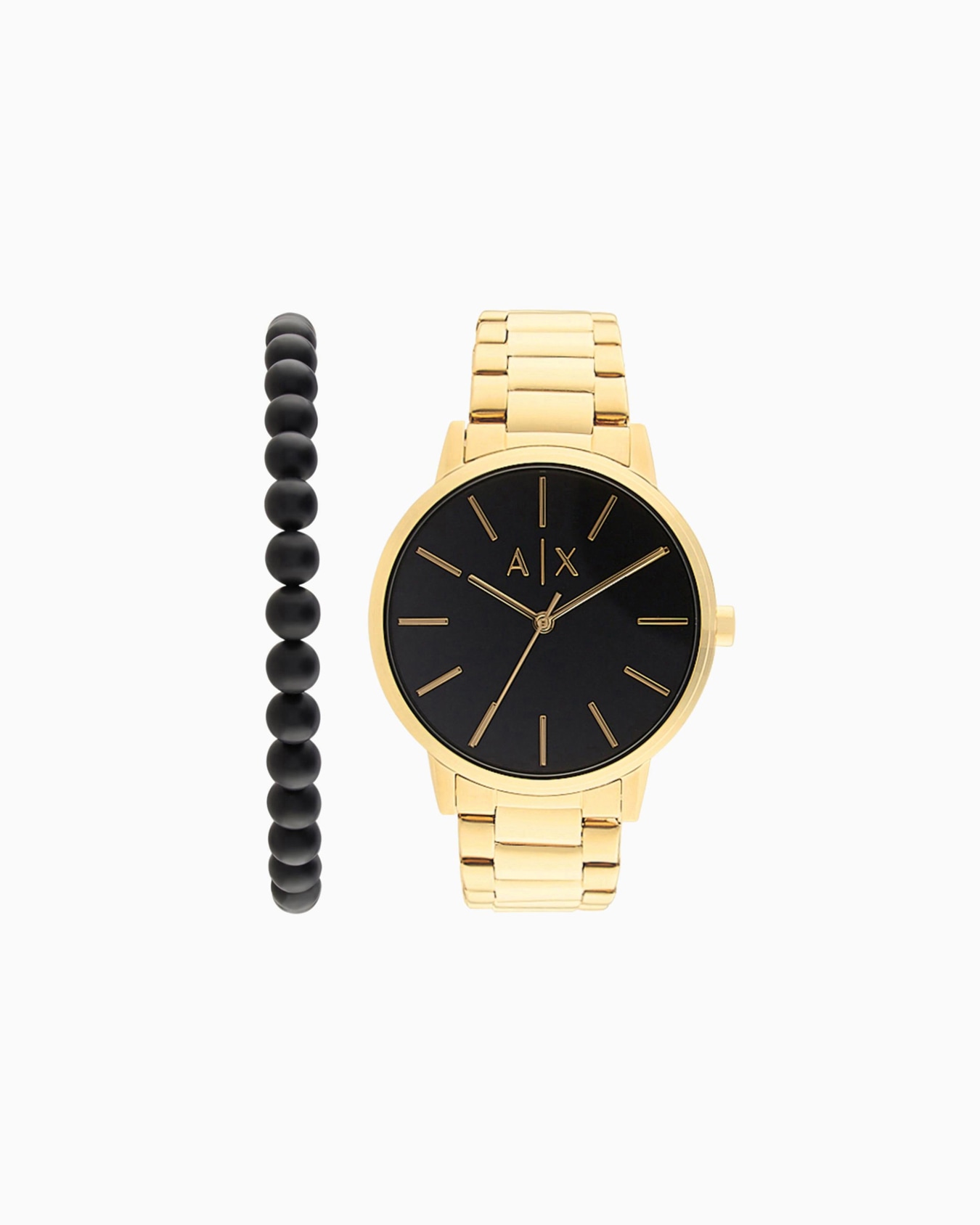 Armani Exchange Three-Hand Gold-Tone Stainless Steel Watch and Bracelet Gift Set
