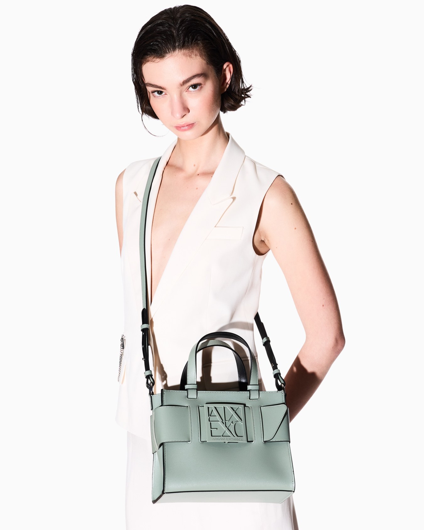 Medium tote bag with double handles and shoulder strap