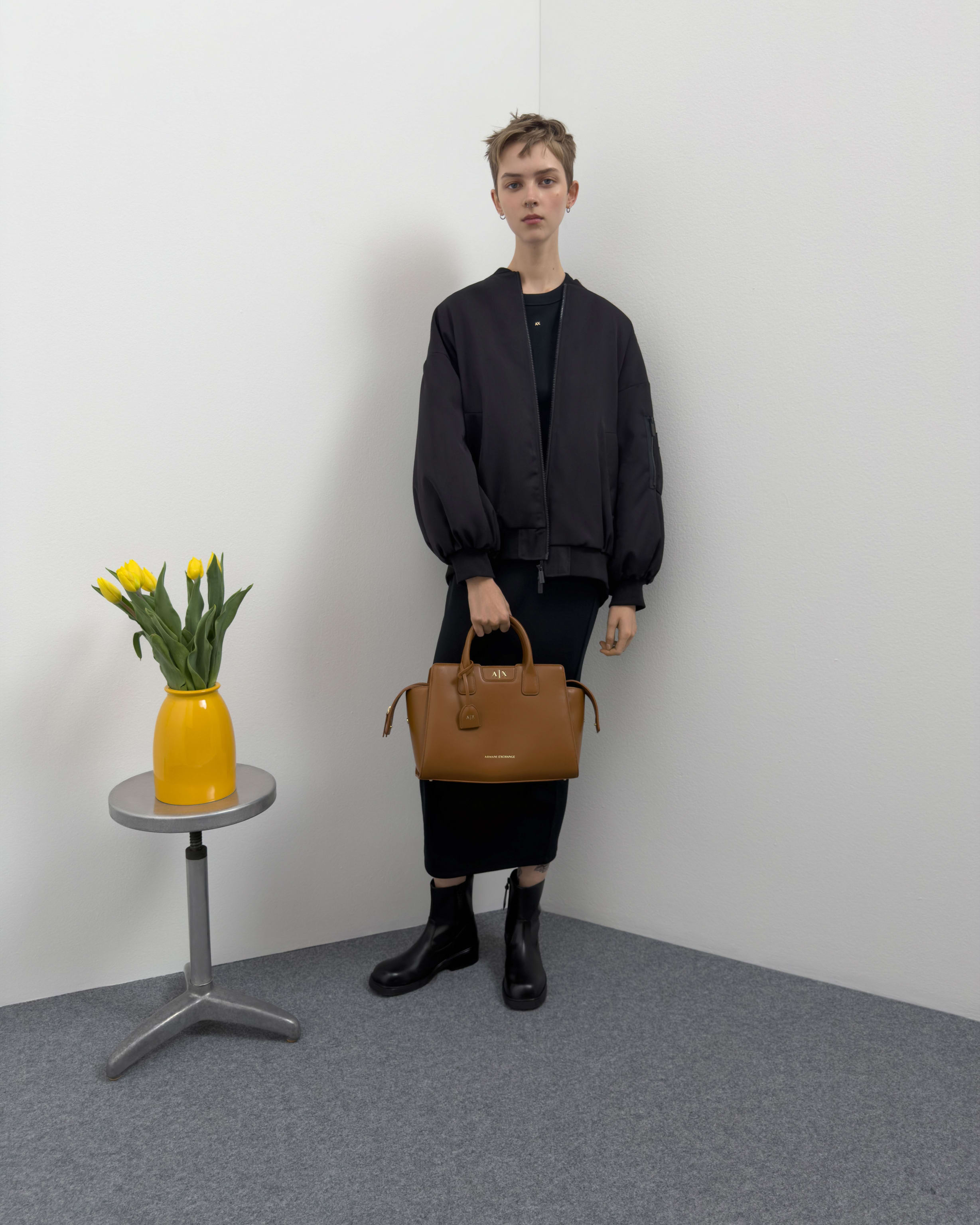 These A|X women's designer bags offer distinctive designs, enriched by iconic details such as monochromatic or embossed logos, sophisticated metal finishes and textures that add character. The collection includes shoulder bags, bags with a chain shoulder strap, handbags and shopper bags for wearing any time of the day with understated elegance.