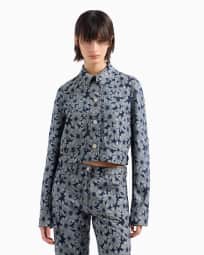 ASV denim jacket with all-over jacquard daisies from the Peace capsule collection